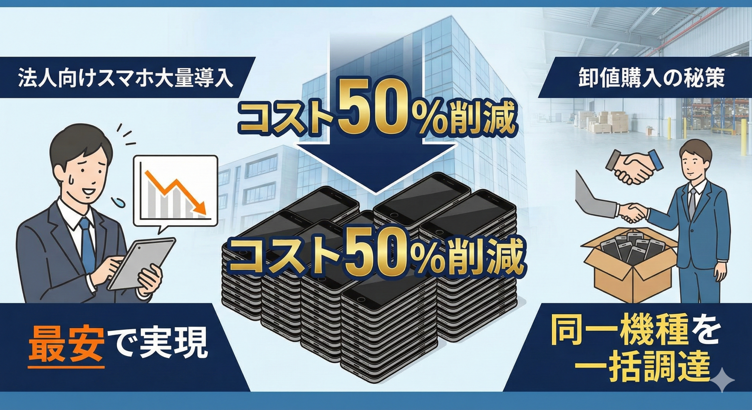 結論から申し上げます。法人スマホを最安で、かつ業務効率を落とさずに導入する唯一の正解は、**「法人専門の卸業者から、同一機種のリユース端末を一括調達すること」**です。