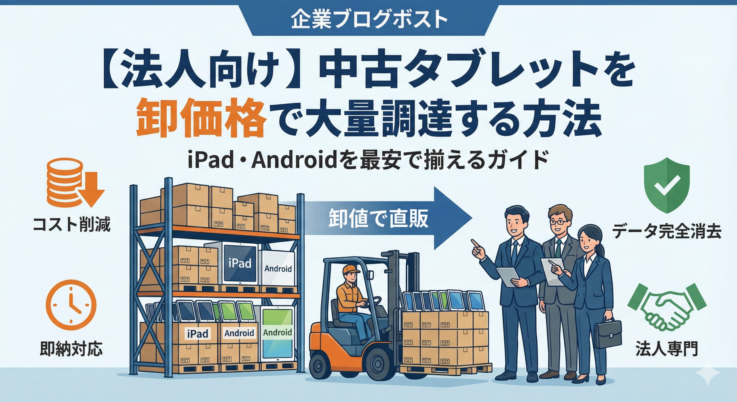 そこで注目されているのが、**「法人専門の卸業者から中古タブレットを直接調達する」**という選択肢です。