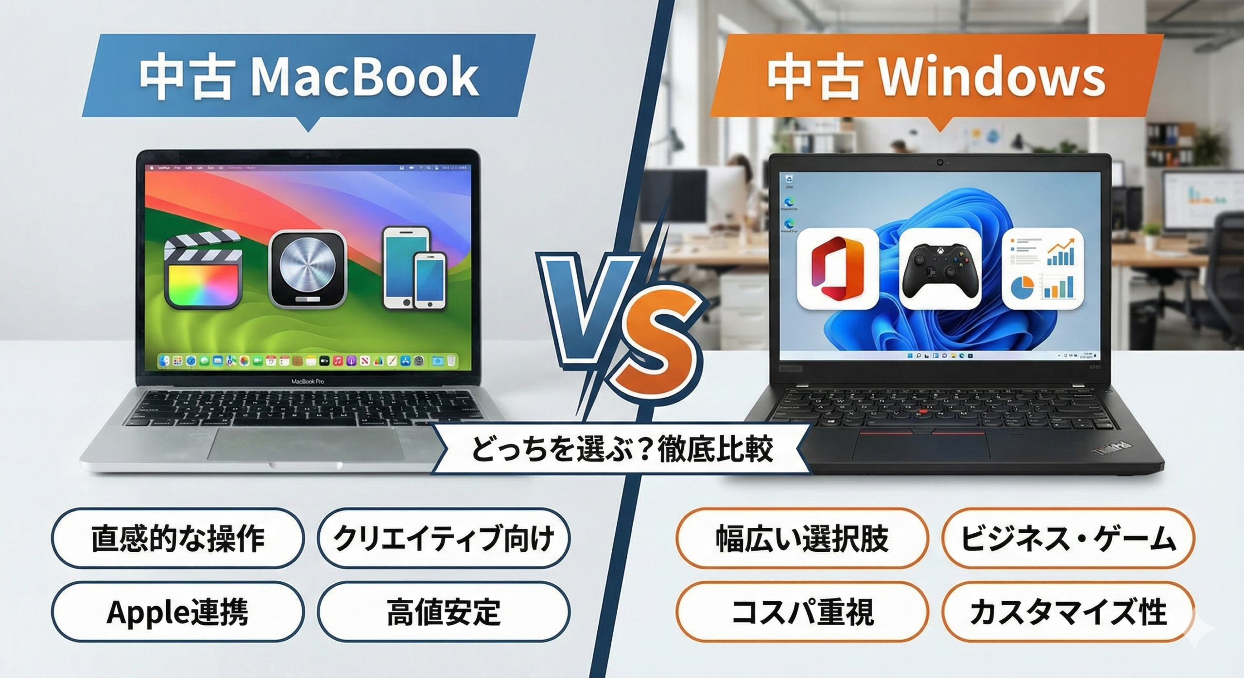 中古パソコンを購入する際、MacBookとWindowsのどちらを選ぶべきか迷っている方は多いでしょう。それぞれに異なる特徴があり、使用目的や予算によって最適な選択は変わってきます。この記事では、中古MacBookと中古Windowsパソコンの違いを詳しく解説し、あなたに合った選択をサポートします。