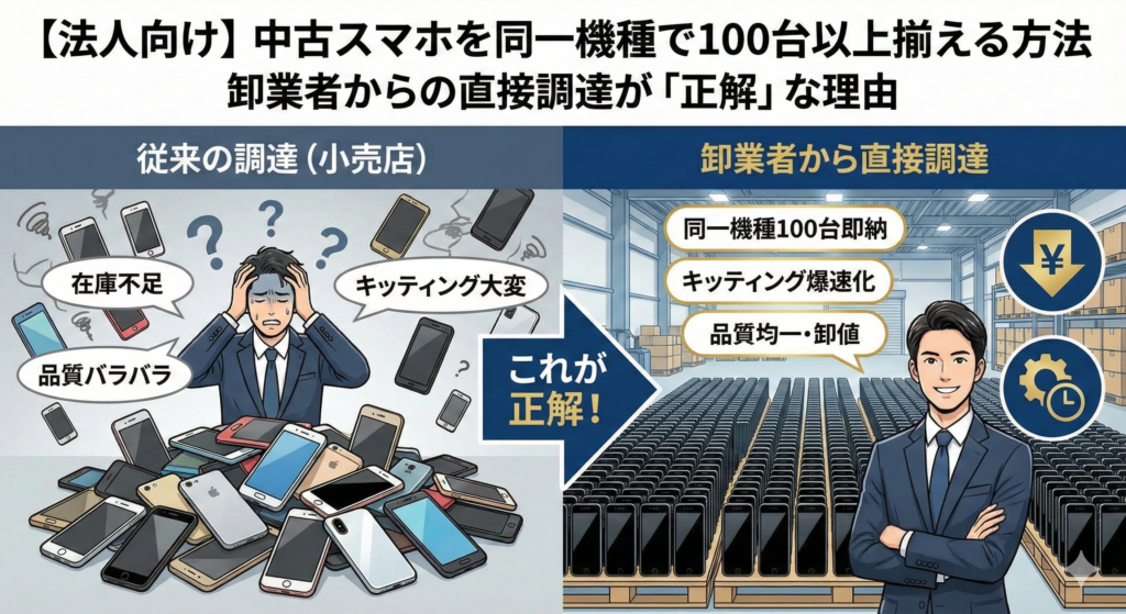 【法人向け】中古スマホを同一機種で100台以上揃える方法|卸業者からの直接調達が「正解」な理由