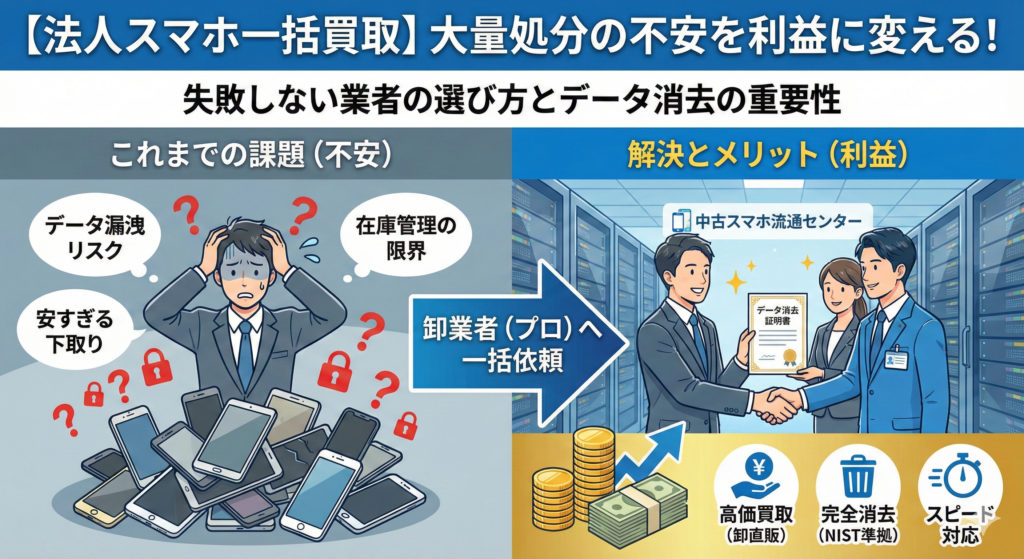 【法人スマホ一括買取】大量処分の不安を利益に変える!失敗しない業者の選び方とデータ消去の重要性