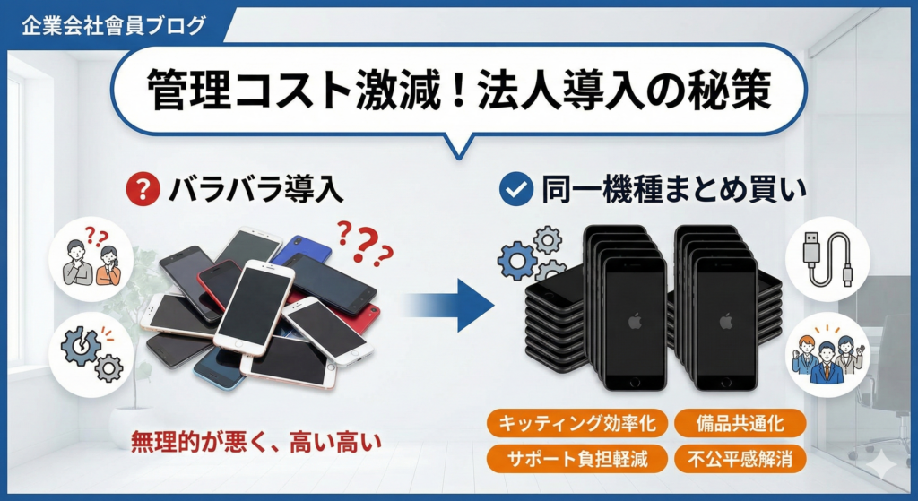 同一機種の中古スマホをまとめ買いするメリットとは?法人導入のコストと管理を最適化する秘策