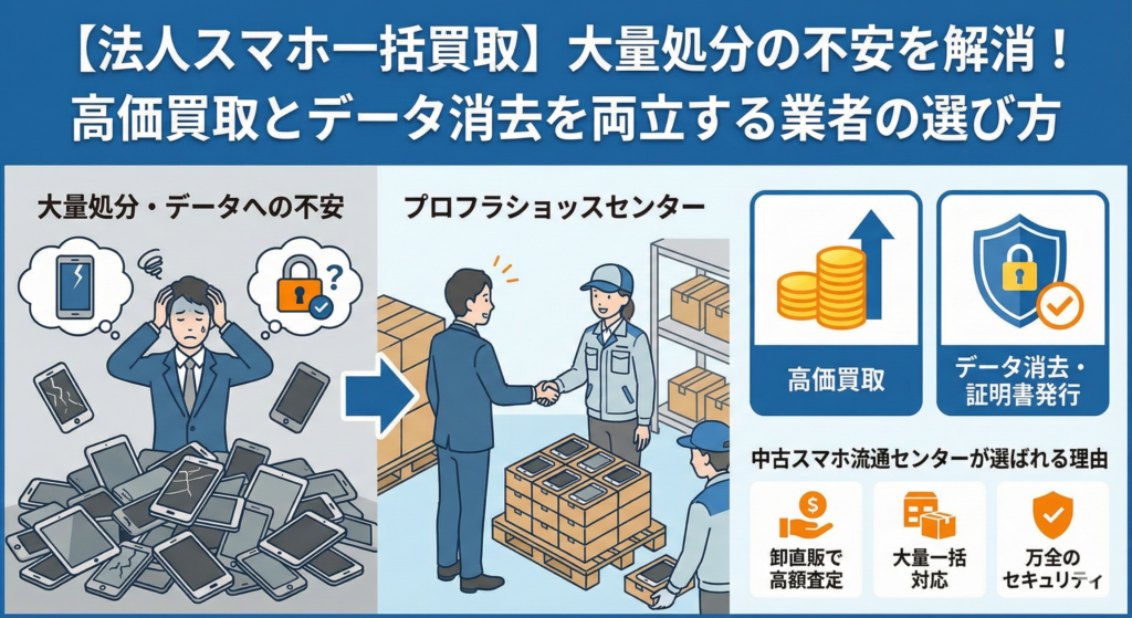 【法人スマホ一括買取】大量処分の不安を解消!高価買取とデータ消去を両立する業者の選び方